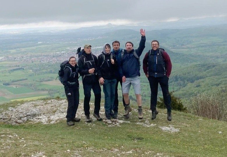 Der erste steile Anstieg durch die Wälder des Albtraufs forderte die Gruppe gleich zu Beginn heraus, wurde jedoch mit der weiten Hochfläche am Auchtert belohnt. Weiter ging es entlang des Randecker Maars, mit schönen Ausblicken auf die drei Kaiserberge, bis zum Schopflocher Moor. Pünktlich zur Mittagspause zog das Wetter zu und ein Regenschauer setzte ein, umso angenehmer war die trockene Rast im „Landgasthof Alb-Engel“.